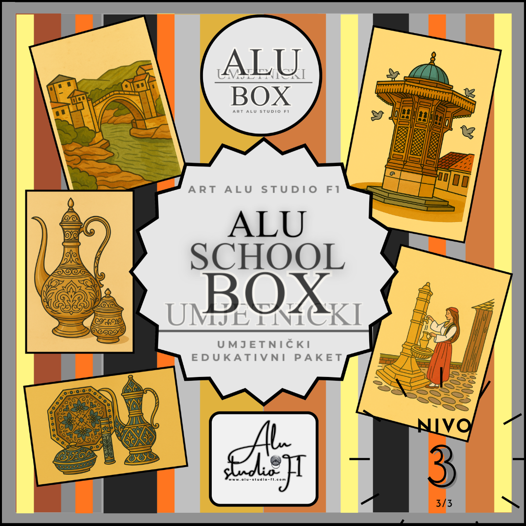 Učenici uče o kulturnim simbolima Bosne i Hercegovine i stvaraju vlastita umjetnička djela uz pomoć posebno kreiranih Alu School Box paketa.